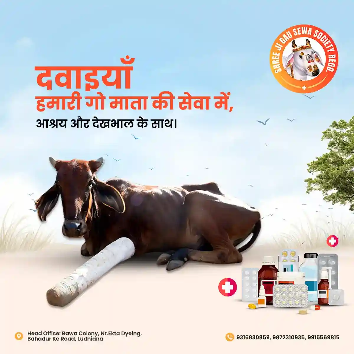 श्री जी गऊ सेवा सोसाइटी वृद्ध और बेसहारा गोवंश को आश्रय प्रदान करती है, जिन्हें गंभीर स्थितियों से बचाया गया है।