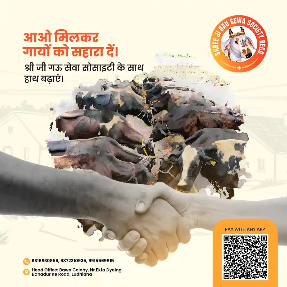 श्री जी गऊ सेवा सोसाइटी बेसहारा गायों और बैलों को आश्रय देती है, जिन्हें उनके मालिकों द्वारा छोड़ दिया गया है।